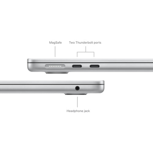 GET CONNECTED — MacBook Air features two Thunderbolt ports, a headphone jack, Wi-Fi 6E, Bluetooth 5.3 and a MagSafe charging port. And connect up to two external displays with the laptop lid closed.