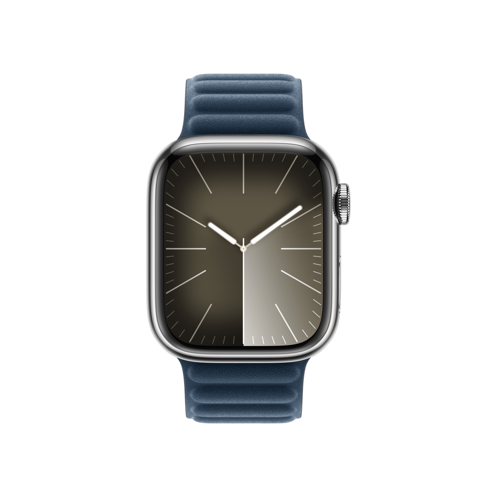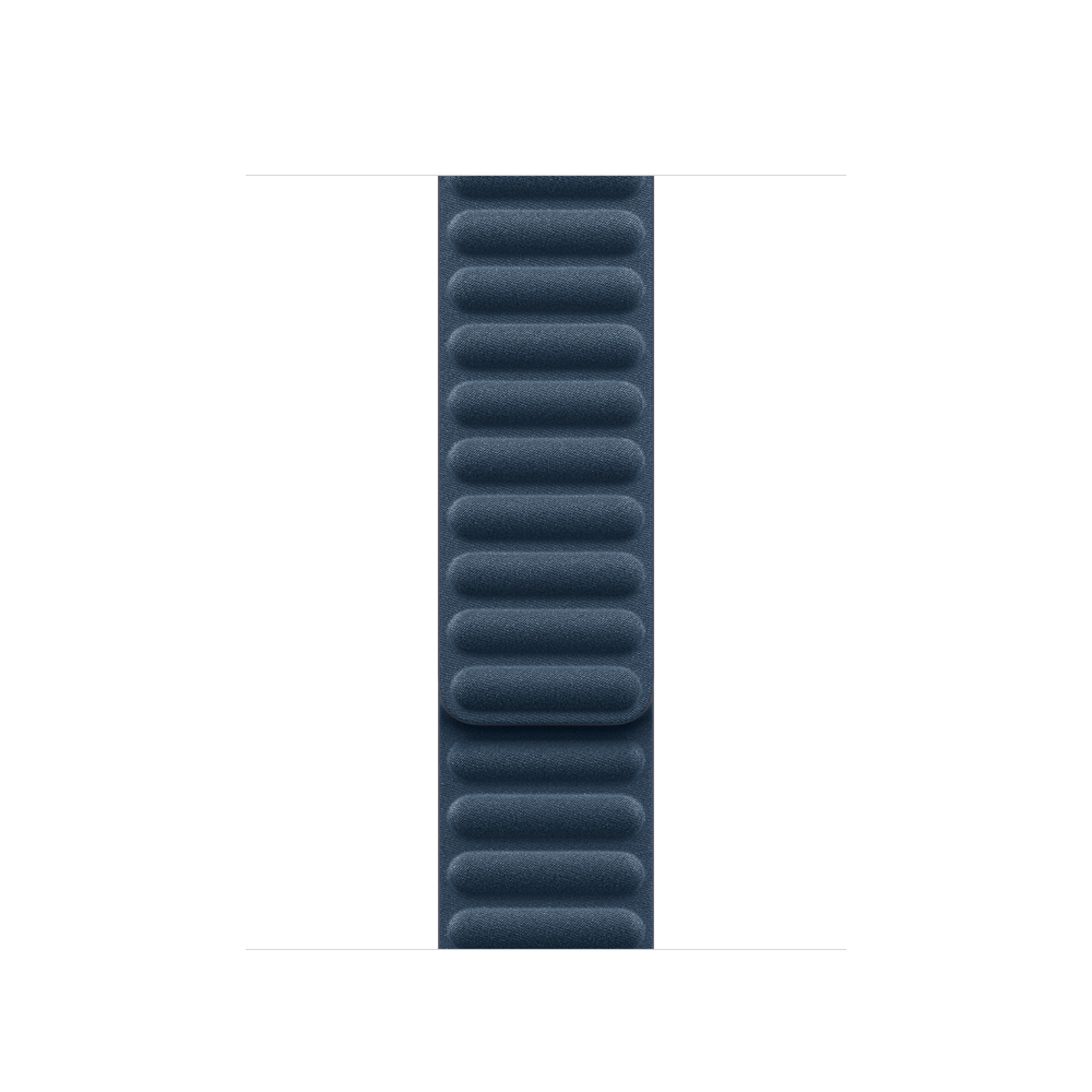 The Magnetic Link with FineWoven elegantly wraps around the wrist and magically attaches with moulded magnets that gently flex to help maintain security and comfort throughout the day. Made from a durable micro-twill, the FineWoven material has a soft, suede-like feel. It was also designed with the earth in mind — made from 68% post-consumer recycled content and significantly reducing carbon emissions compared to leather.