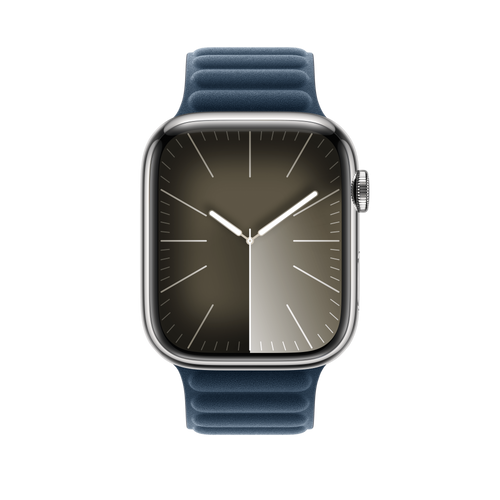 The Magnetic Link with FineWoven elegantly wraps around the wrist and magically attaches with moulded magnets that gently flex to help maintain security and comfort throughout the day. Made from a durable micro-twill, the FineWoven material has a soft, suede-like feel. It was also designed with the earth in mind — made from 68% post-consumer recycled content and significantly reducing carbon emissions compared to leather.