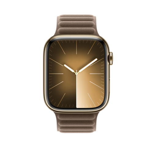 The Magnetic Link with FineWoven elegantly wraps around the wrist and magically attaches with moulded magnets that gently flex to help maintain security and comfort throughout the day. Made from a durable micro-twill, the FineWoven material has a soft, suede-like feel. It was also designed with the earth in mind — made from 68% post-consumer recycled content and significantly reducing carbon emissions compared to leather.